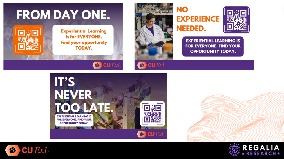 During a Masters Qualitative Marketing Research course, we partnered with the Experiential Learning department at Clemson to gather qualitative data using focus groups to uncover key insights regarding student access and involvement in experiential learning programs. This project was selected as the top presentation in the class to present to the CU-ExL team and other university officials as part of a Symposium. Our key findings and recommendations will help shape what experiential learning opportunities look like for future Clemson students.